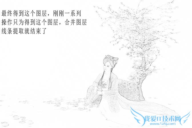 6、最后得到这个图层,刚刚一系列操作只为得到这个图层,合并图层线条提取就结束了。