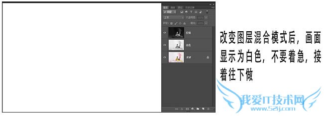3、改变图层混合模式后,画面显示为白色,不要着急,接着往下做。
