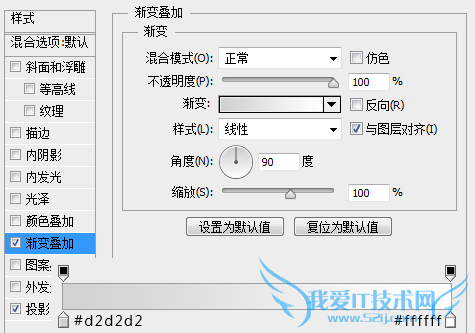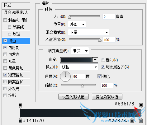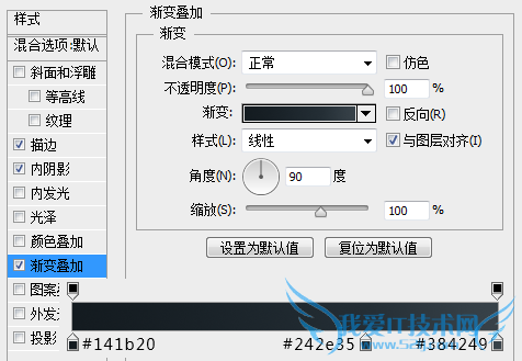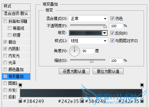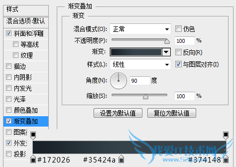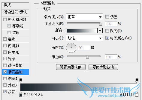 我们首先进行背景的创建,我创建了一个“渐变”调整层,设置的#444c60到#262f37的90度的径向渐变。