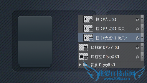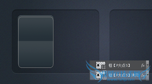 选择框图层,复制一层在下层,调整圆角矩形大小,宽度缩小4像素,高度不变,向下移动4像素。