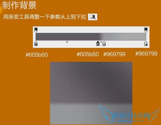 新建大小自定的画布,用渐变工具调整一下参数,从上到下拉出下图所示的线性渐变。