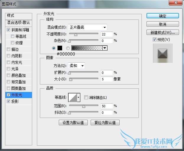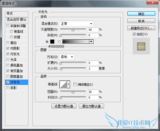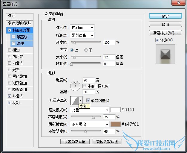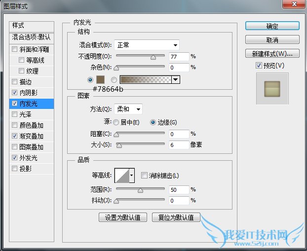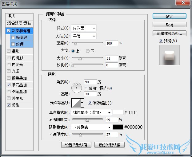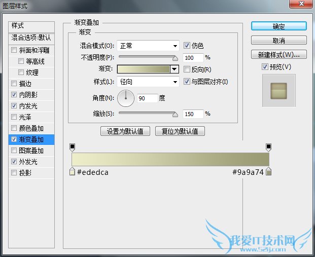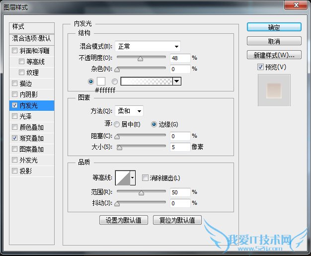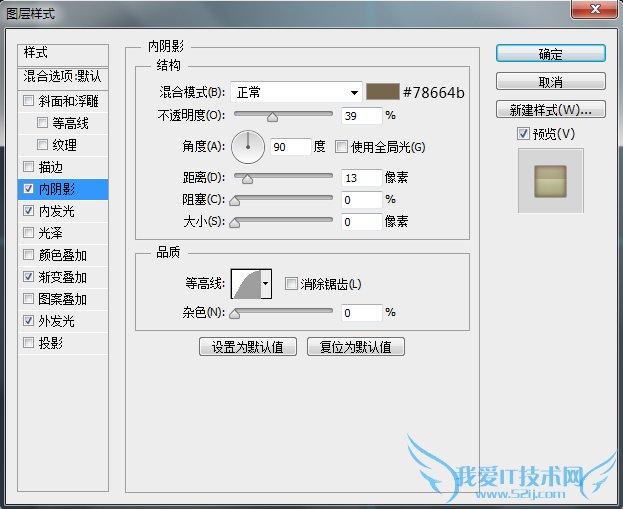 这里再次强调一点,图层样式中的参数设置是对应其相应图层的,受图层大小尺寸影响,在不同尺寸下,效果呈现是不同的。