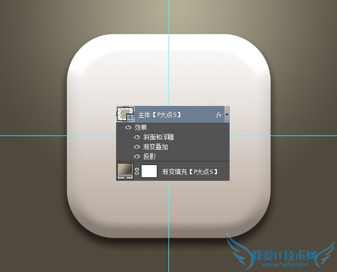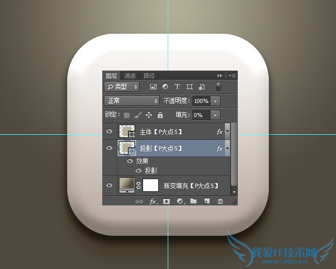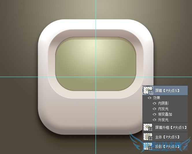 最后我添加了我们P大点S的LOGO和图标,设置了一个内阴影和投影,这个图层样式太经常用到了,我们的教程里太经常看到了,这里就不说了。