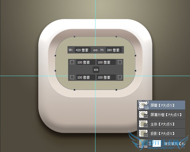 下面,我们创建屏幕,设置前景色为#b4b097,使用圆角矩形工具,画一个大小为420*280像素,圆角半径为100像素的圆角矩形。