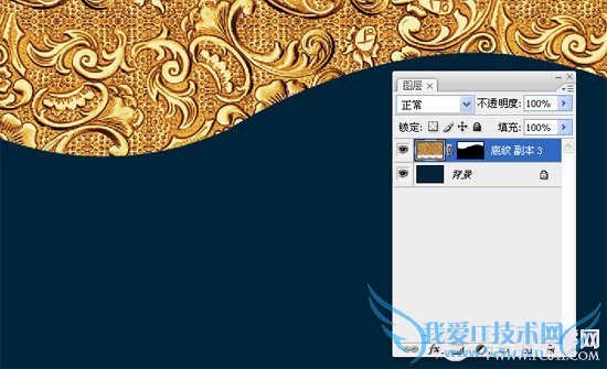 第二步 第三步:找到高贵花纹的素材--放到背景图层上--用钢笔勾出弧度--创建蒙版