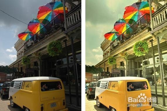 1.建立新图层,填充淡黄色,叠加模式,数值247,240,197 2.复制刚才的黄色图层,线性加深模式,蒙版擦出黄色小车,避免小车颜色过黄, 3.调亮度对比度,以高光部分的色彩和曝光正常为准,亮度-20,对比度+64,新建饱和度调整图层,饱和度-31.确定明处的最终亮度,以高光处色彩和细节为准,暗处可以先忽略, 4.复制背景图层调节暗影高光,以暗部细节最到位为基准,阴影:数量100,色调宽度33,半径102,高光:数量0,色调宽度50,半径30,调整:颜色校正+20,中间调对比度0,修建黑色0.01%,修建白色0.01% 5.复制背景图层调整天空亮度,用该层弥补天空过曝的不足, 6.调整细节,把天上的电线擦掉,修复画笔仿制图章都行, 7.拼合图像,微调细节,锐化。