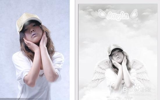 1.用钢笔在背部勾勒一个翅膀的外形, 2.在当前的工作路径转换成路径1,双击工作路径即可。 3.将路径转换成选区(Alt+回车),复制一层,羽化3像素, 4.填充白色,选择合适的强度使用涂抹工具,进行适当的边缘的涂抹。 5.复制图层,填充不同颜色,合图层1有区别即可,调节透明度呵图层属性, 6.按照前面的方法制作第二个翅膀,调节合适的透明度,可以用黑白渐变调整层及蒙板调整, 7.新建图层,画一个圆形选区,在选区中用画笔画圈,调节适当的透明度, 8.复制背景图层粘贴入新建的Alpha通道,除左上角外其他地方填充黑色,使用滤镜-模糊-径向模糊:数量90,模糊方法:缩放, 9.选择Alpha通道(在通道上按住Ctrl),在图层区新建图层,填充淡黄色, 10.用钢笔生成光束的路径,将路径转换成选区,填充黄白渐变色, 11.调节透明度,用橡皮擦擦光的底部,是光线变得自然, 12.用钢笔在人物身上勾勒光线路径,将路径转换成选区,在选区边缘用画笔画,调节透明度,结合橡皮擦和涂抹工具会达到更好的效果,多花几个光环效果会更好
