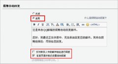 请登录QQ邮箱=》设置=》常规=》假期自动回复进行“启用”即可,同时您也可以设置“仅对联系人中的邮件地址进行回复”、“在首页提示我已设置自动回复”)。 温馨提示...