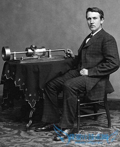 爱迪生和他发明的留声机