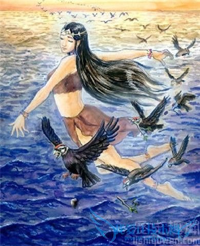 女娃自己站在海边一直看着太阳升起,突然一阵浪打过来就将她淹死了,炎帝十分的伤心,女娃的魂魄变成了鸟后曰精卫,精卫不停地用嘴吊着石子往大海里填,想要将大海填满,就这样一直没有放弃,知道大海被它填满为止,于是世间上就有了这样的一个传说,这也是在教导我们要有一个持之以后不畏艰苦的学习精神。