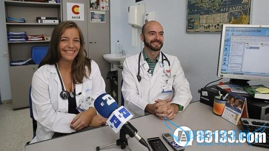西班牙患埃博拉女护士的主治医生们接受访问(网页截图) 国际在线专稿:据埃菲社10月15日报道,西班牙患埃博拉女护士的家属代表向埃菲社的记者透露,15日,女护士罗梅罗已能起身,并与其丈夫通话10余分钟,其目前的状态十分令人鼓舞。
