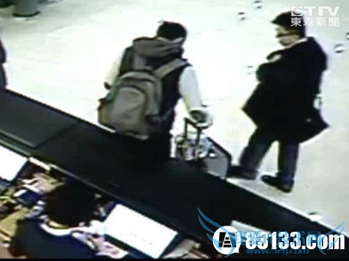 监视器画面显示,遇害的内地项姓男模穿着黑色背心、背着后背包,和另一名穿着黑外套的男子相约到饭店外拍,2人在柜台check in后搭电梯上楼,但黑衣外套男行径鬼祟,一直面对电梯试图躲避监视器(上图),随后2人一起进房间。