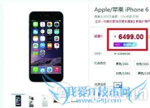 某商城16G版本iPhone6卖6499元 网络截图 果粉们都在期待着iPhone6和iPhone6 Plus早日在大陆发售,此时,全国各地的黄牛市场已十分火热。9月19日,iPhone6全球正式发售的当日,包括南京在内的诸多城市,iPhone616G版本水货价格被炒到近万元,相比苹果香港官网报价5588港币(约合人民币4422元),贵了一倍。好景不长,近几天,全国黄牛市场iPhone6的价格可谓每日一降,昨天上午,16G版的售价一度跌破了6000元大关。