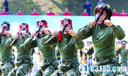 当地时间2014年10月1日,韩国鸡龙,韩国女特工在建军66周年纪念仪式上进行武术示范。 □张伟(新华社供本报特稿)
