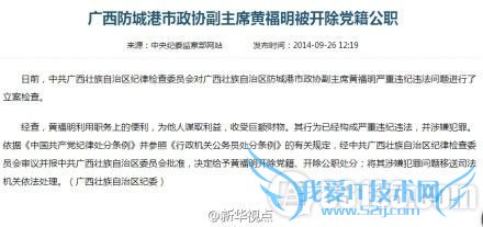 广西防城港市政协副主席黄福明被双开