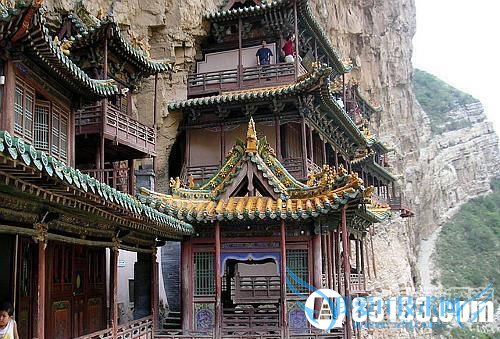 南北有三檐歇山顶危楼耸起,对峙而立,由低向高三层叠起,离地百余尺,附于绝壁上,三面环廊国抱、六座殿阁,相互交叉,飞架栈道相连,高低错落,木制楼梯沟通,迁回曲折,构思布局妙不可言、整个寺面似虚而实,似危而安,实中生巧,危里见俏,能让你体会到一种在国内其它寺庙体会不到的奇险感。