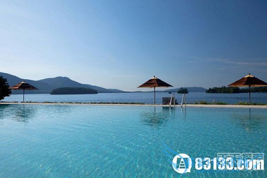 萨加莫尔(乔治湖,纽约):位于纽约州北部70英尺的岛屿之上,萨加莫尔拥有一个蓄水量达9.5万加仑的无边际泳池,同时还拥有一个仅供成人使用的泳池。