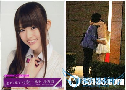 乃木坂46松村沙有理被曝与已婚男路边拥吻 最新发行的杂志《周刊文春》曝出女子偶像团体乃木坂46的中心成员松村沙有理(22岁)与一男子在公寓前的路边拥吻的照片。