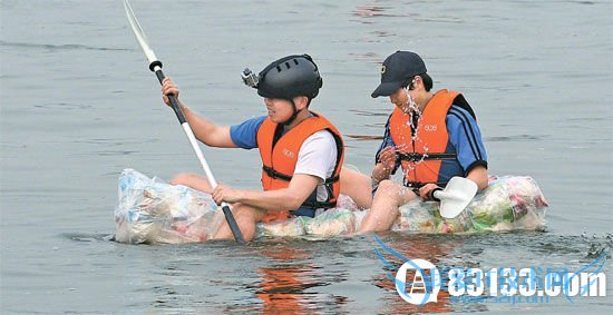 韩大学生制作“饼干木筏”渡江抗议过度包装