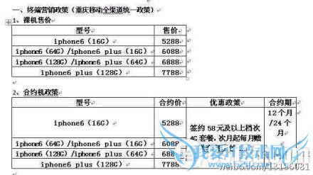 消息称移动版iPhone 6合约价曝光:与裸机一致