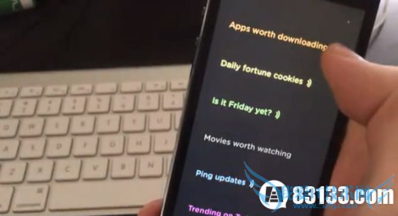 Secret的主设计师本·李(Ben Lee)在一篇博客文章中介绍称,用户可以在Ping应用中选择自己感兴趣的话题,如“Twitter热门话题”、“值得下载的APP”等,然后Ping会据此推送新消息。