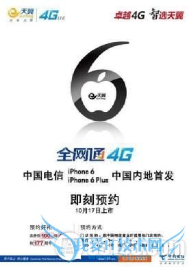 中国电信将于10月17日在全国发售iPhone6和iPhone6 Plus 新浪科技讯 9月30日下午消息,中国电信今日宣布将于10月17日在全国超过6700家门店发售iPhone6和iPhone6 Plus。 用户可在10月10日开始通过各门店和网厅www.189.cn预约iPhone6与iPhone6 Plus,预约时用户存100元可得400元话费。