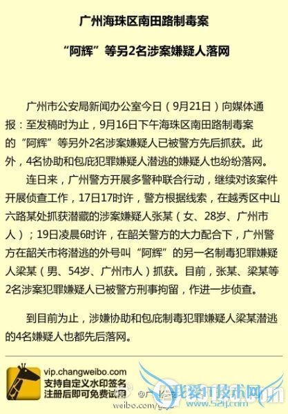 广州市公安局通报嫌疑人落网 新华网广州9月21日电(记者扶庆) 据广州市公安局21日通报,广州市海珠区南田路制毒案另外2名涉案嫌疑人已被警方先后抓获。此外,4名协助和包庇犯罪嫌疑人潜逃的嫌疑人也先后落网。