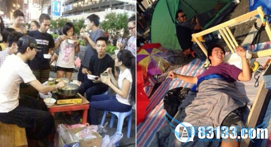 港媒曝占中示威者乱相:霸路占道吃火锅打麻将