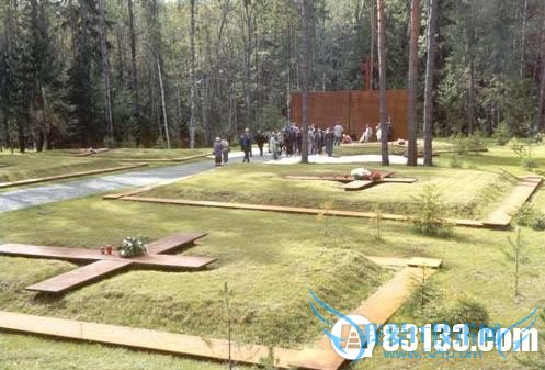 坑,上面铺满松树和白烨树。除卡廷森林外,苏联方面还在斯塔罗别利斯克战俘营枪决了3820人,奥斯塔什科夫集中