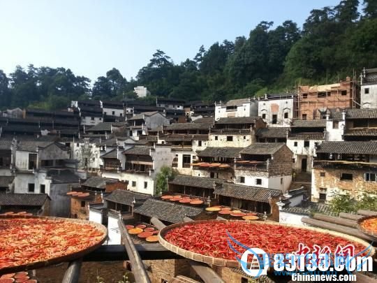 图为“中国最美乡村”婺源篁岭景区独特的“晒秋”风俗。 王剑 摄