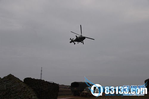 参演部队在战场机动中,“蓝军”出动武直—9武装直升机,对“红军”实施空中火力突击