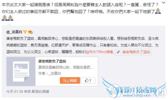 文章中没有指明“唐老鸭”姓名,但因此前有传言称与周星驰在《大话西游》中有合作的蓝洁瑛曾去过周星驰家等暧昧消息,文章发出后,有周星驰粉丝留下犀利的批评。对此,向太随后转发文章并说道:“本来此文大家一起猜测是谁?但是周黑粉为什么要替主人对号入座呢?一直骂,奇怪了?你们主人做过的事从来都不敢认,你们帮他认了?”(新娱)