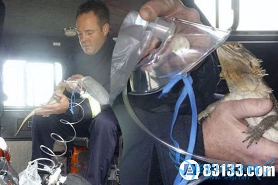 (原标题:英消防员火灾中救出宠物蜥蜴 用面罩为其输氧(组图))