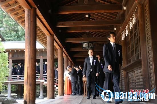 资料图:日本二战战败投降69周年,供奉有14名二战甲级战犯的靖国神社再度成为外间关注焦点。图为8月15日当天,日本超党派议员组织“大家一起来参拜靖国神社国会议员之会”成员,再度“扎堆”参拜靖国神社。据该会发布的数字,当天其来参拜的议员总数约为80人。高越 摄 中新社华盛顿10月19日电 (记者 张蔚然)中国驻美大使崔天凯当地时间19日在华盛顿参观“国家记忆图片展-中美在二战期间的合作”展览,强调维护战后国际秩序的重要性。他就近日日本首相安倍晋三向靖国神社供奉祭品、内阁阁僚前往参拜一事表示,日本一些为中日关系“开倒车”人要负历史责任,应拿出行动纠正错误。