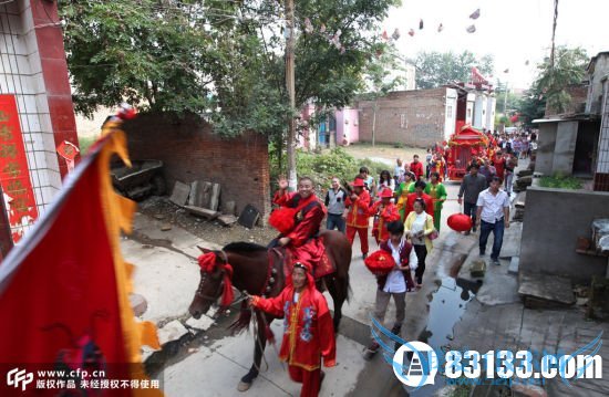 新浪娱乐讯 2014年09月29日,河南省洛阳市,著名相声演员冯巩徒弟曹随风在老家河南省偃师市新寨村举行新婚典礼,按照当地风俗,曹随风当日骑高头大马、用秤杆挑新娘盖头,现场还射丘比特之箭,曹随风今年35岁,2014年央视春晚上,他在小品《我就这么个人》,中和师傅冯巩搭档,塑造的“猕猴桃”形象,以憨厚朴实的表演,风趣的河南方言,让全国亿万观众笑倒了。