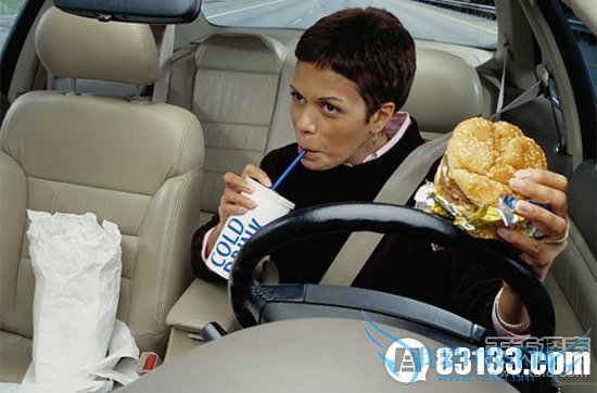 没错,在开车时抓起快餐大咬大嚼,会被罚85欧元。所以连口水都别想!