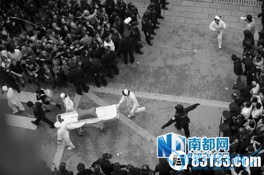 给救援让路。昨日,昆明市北京路明通小学发生踩踏事故,6人死亡。