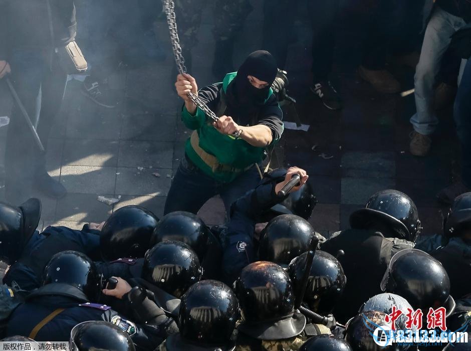 乌克兰发生严重冲突示威者抡起铁链猛揍警察