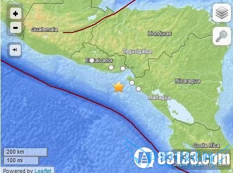 位置示意图 来源:美国地质勘探局网站。 中新网10月14日电 据路透社报道,萨尔瓦多与尼加拉瓜附近海域当地时间13日晚发生里氏7.3级强烈地震,整个中美洲均有震感,已造成至少1人死亡,但是迄今还没有传出重大损失的报告。