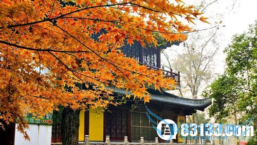 特色看点:栖霞山主峰凤翔峰海拔286米,被乾隆皇帝称为“第一金陵明秀山”。进入山门,几株刚及人高,满身叶子无一不红的枫树,三三两两错落在花带里,那样小巧玲珑,像极了过年时一个个喜气洋洋的身着盛装的小孩。那红的色彩,在绿的花带里,充满了中国年画红红绿绿的风韵。 深秋的栖霞,枫林如火,漫山红遍,宛如一幅美丽的画卷,素有“春牛首,秋栖霞”之说。