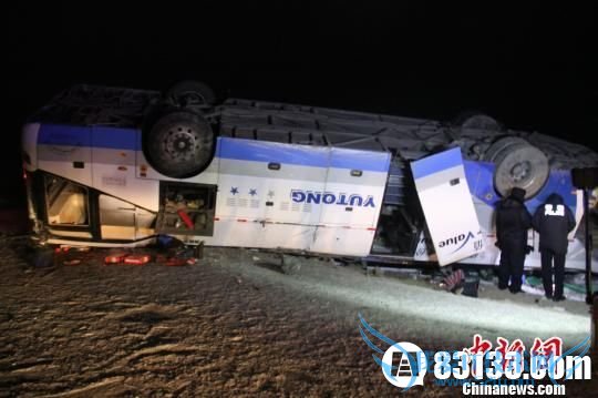 经询问现场交警得知,该大客车由石河子开往伊犁,车上载有26名乘客,该路段由于降雪路面结冰,加之车速过快导致事故的发生。此次事故共造成1人死亡、3人重伤、其余人员受到不同程度的伤害。
