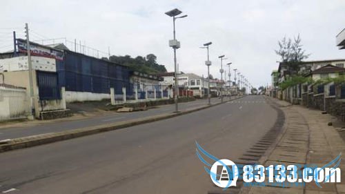 封锁期间,塞拉利昂的街道一片冷清。 中新网9月22日电 据英国天空电视台网站报道,22日,塞拉利昂结束了为期3天的全国“闭户”封锁期,官员称,在此期间,发现了92具遗体,以及至少56位新的埃博拉感染者。