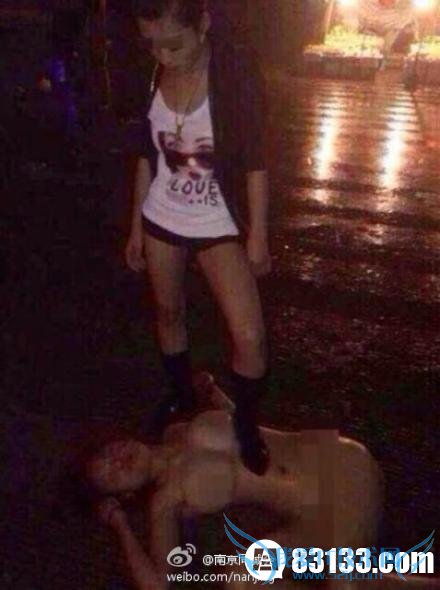 9月21日,河南一女子全身遭扒光,一丝不挂躺在下过雨的地上,头发凌乱,疑似被打过,一穿戴完整的女子将其踩在脚下。据现场爆料网友说是原配去南京1912附近的酒吧抓小三,结果反遭小三的姐妹将其扒光殴打。而丈夫在一旁竟然无视,一副置之不理的样子。图为小三打原配现场。