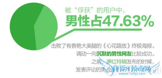 点评:激发女性母爱的麦兜,依然牢牢占据女性市场。女性比例占到了88.41%。值得注意的是,这次《黄金时代》态度版海报在调动一向沉默的男性方面比较成功,评论人群中,有47.63%是男性。之前,萧红特辑发布的时候,发表评论的男性比例只有25%左右。