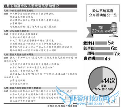 政法系统官员活动情况 法制晚报讯(文/记者 王选辉)十八届四中全会正在进行,《法制晚报》记者根据公开报道梳理发现,实际上,从8月21日起至今的60天里,政法系统高官就密集展开调研或举行会议。