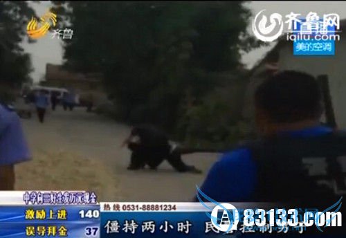 民警利用送水契机制服男子 山东淄博临淄朱台镇薛家村前几天来了个陌生男子,先是拿砖头把地里一干活的村民给砸伤了,随后又站在该村民家门口,挥舞着菜刀要砍人,一村人被吓得有家不能回。