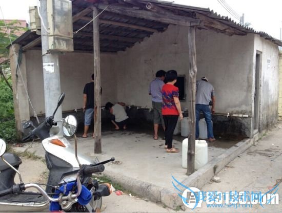 由于不敢饮用家中的自来水,梅陇镇居民买山泉水饮用