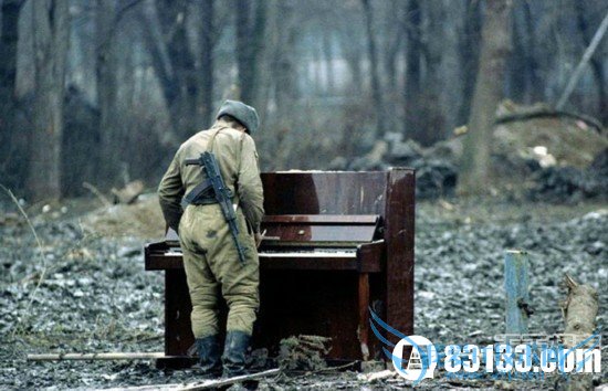 在 1994 年,一名俄罗斯士兵于车臣弹奏一台废弃了的钢琴。