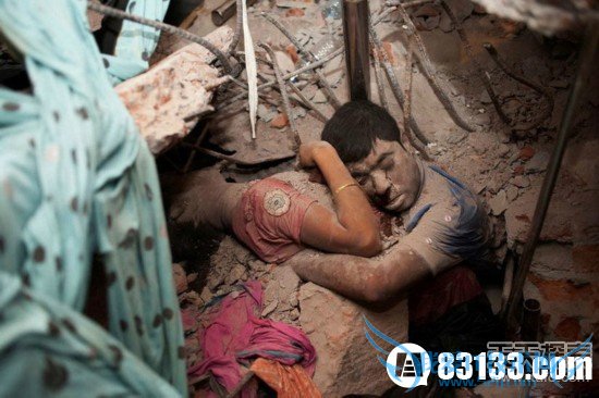 在工厂倒塌的瓦砾中发现的一对夫妻 by Taslima Akhter