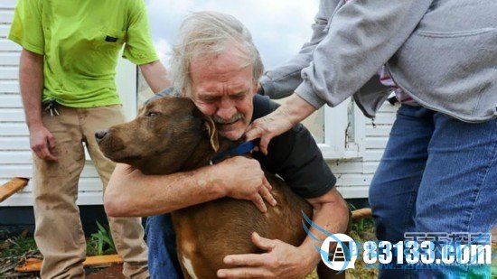 在2012年3月龙卷风吹袭美国亚拉巴马州后,Greg Cook在他被毁的房子里找到他的狗 Coco by Gary Cosby Jr. / AP